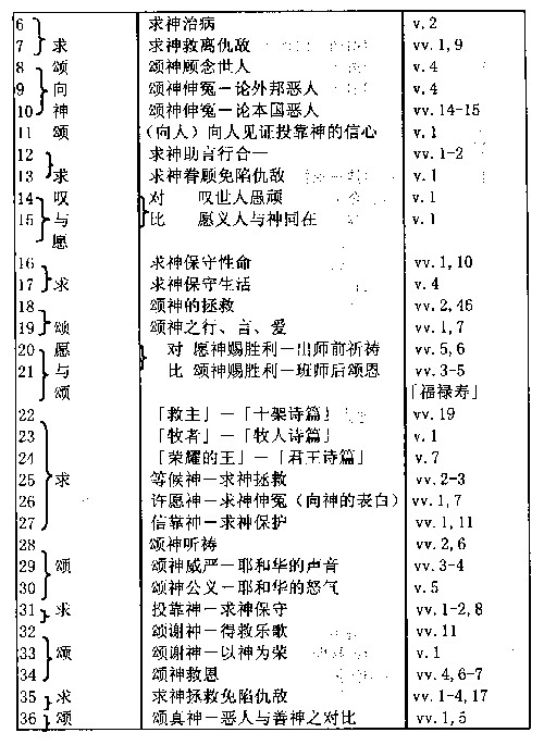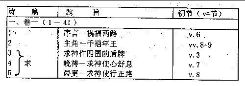 注 2 有关此题之研究必参Companion Bible, Bagster, 1969年再版。编者(E.W.Bullinger)不但对诗类文学极有研究,他以同样的方法把全部圣经每卷细析,为一本不可不读之精心 巨著。