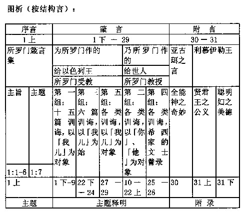 Wisdom)来。书内多以人生的教益为主题,特别论到人世上存活的问题,也论到人与人相处之问题,藉着这些彰显神的智慧,因他是一切智慧的源头(参箴1:7;