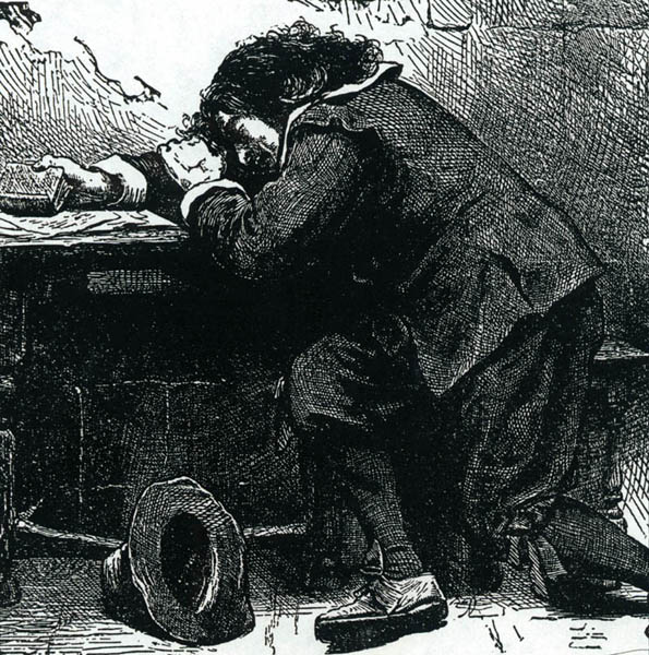 他说来,黑夜和白天同样烦恼;因此,他不但睡不着觉,而且 整夜的叹息、流泪。后来,天亮了,他们急着要知道他的情形。 他告诉他们,更糟,更糟。他又开始对他们讲话;可是他们开 始狠起心来了。他们还想用强硬粗暴的态度来驱除他的怪病; 有时他们愚弄他,有时责骂他,有时根本不理睬他。因此他就 回到自己的房间里去为他们祈祷,一心的怜悯他们,同时他也 为自己的痛苦寻求安慰;他还独个儿在田野里徘徊,有时候看 书,有时候祈祷;他就这样度过了好多日子。