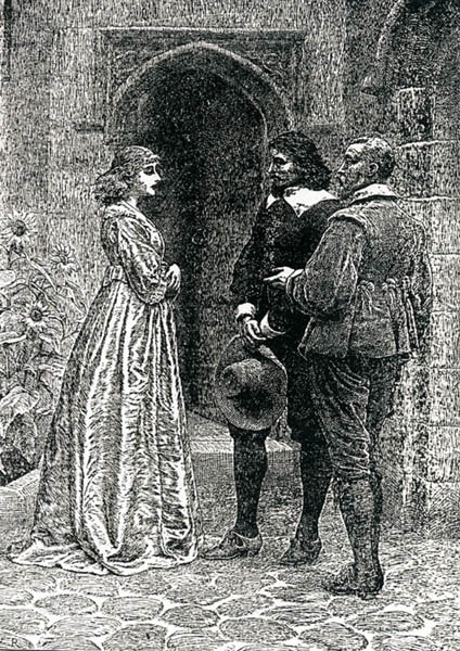 丽、名叫谨慎的少女从房子里走出来,问看门人为什么叫她。