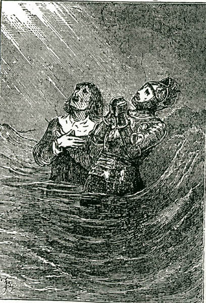 接着我在梦里看见那两个发亮的人吩咐他们朝着天门呼 喊;他们照着做了,上面有几个人探出头来张望——他们是以 诺、摩西和以利亚等人——有人对他们说,这些旅客是从毁灭 城来的,因为他们热爱这地方的国王。然后两个旅客就把自己 当初拿到的证件递给他们,接着又把这些证件送呈国王,他看 了之后说,这两个人在哪儿?有人回答道,他们站在门外。国 王就吩咐开门,他说:“使守信的义民得以进入3。” 我在梦里看见这两个人走进天门;看呀!他们一走进门, 就变了形,穿上了像黄金那样发亮的衣服。还有拿着竖琴和冠 冕的天使迎接他们,把那些东西递给他们;竖琴是作为赞美用 的,冠冕是荣耀的象征。接着我在梦里听见所有城里的钟又都 在为这场欢乐而叮叮当当敲了起来,有人对他们说,“来参加 主的欢乐。”我还听见那些人高声地唱,“但愿颂赞、尊贵、 荣耀、权势都归给坐宝座的和羔羊,直到永永远远4。” 正当门给打开让他们进去的时候,我从他们后面望进去, 哎呀,城里像太阳那样发着光;街道也是用金子铺的;在里面 走着的人都头戴冠冕,手拿棕榈枝和唱赞美歌用的金竖琴。 还有长着翅膀的人,他们不断地说,“圣哉,圣哉,圣哉 我们的主!”这以后,他们把门关上;我看到这儿,心里真巴 不得自己也跟门里面的人在一起。 当我注视这一切的时候,我回头往后面看了一下,我看见 无知来到河边;他却很快就渡过了河,不像那两个人遇到那么 多困难。因为正好那时有一个名叫空想的摆渡人在那儿,他用 船把他带过了河;因此无知,像我刚才看见的那两个人一样, 也爬上小山向天门走去;不过他只一个人走着,并且没有人来 迎接他,给他任何鼓励。他一走到天门前面,仰头看上面写着 的字,然后开始敲门,满以为里面的人会很快替他开门;可是 从门上面望出来的人问他,你从哪儿来?你来干什么?他回答 说,我在国王面前已经吃过喝过,他在我们街上教导过我们。 于是他们向他要证件,好拿去给国王看,他就伸手到怀里,掏 了半天,还是掏不出什么来。然后他们问,你没有证件吗?那 个人一言不发。于是他们就去报告国王;可是他不肯下来见他, 而吩咐领基督徒和盼望进城的那两个发亮的人去把无知手脚绑 起来,打发掉。接着他们把他提起来,带过空中,到我所看见 的小山旁边那扇门那儿,把他推进门去。这时我才知道,即使 在天门,也有通到地狱的路,就像毁灭城一样。这时候我醒了 过来,啊,原来是一场梦呢。