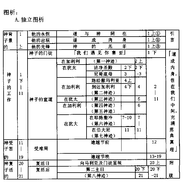 。如马太福音是圣殿的以色列人院,马可福音为祭司院,路加福音为外邦人院,约翰福音是圣殿之至圣所无疑(注44)。因本书把主的心揭开,叫世人晓得他是神的儿子(20:31a),也叫人因相信神而得永生(20:31b)。圣经说: