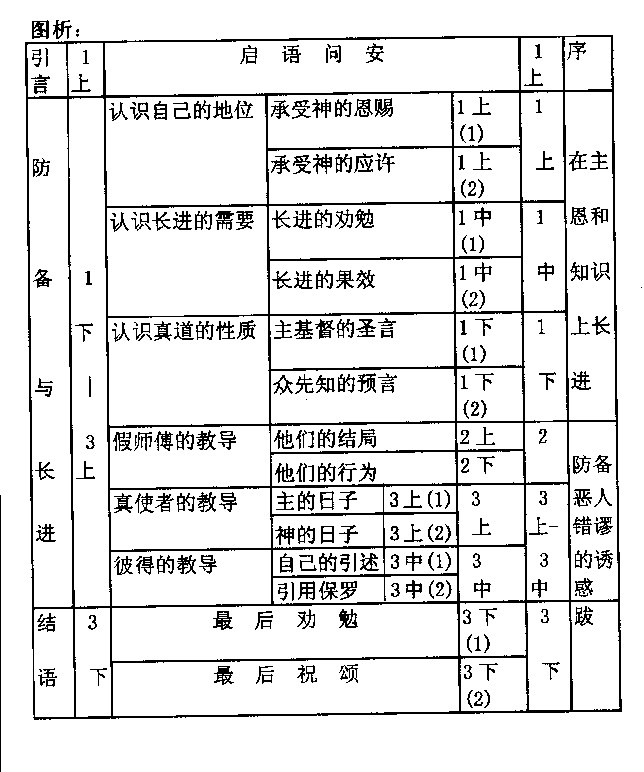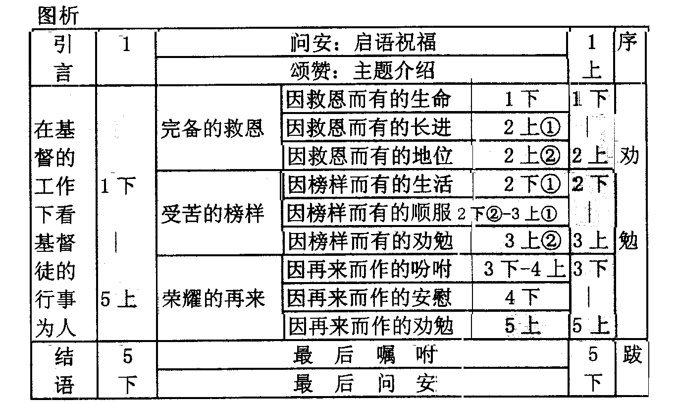 2:5,9),它在组织上的讨论也甚为简略,主要由长老管理(彼前 5:1-4),执事的职分也未见提及(彼前 1:12;4:10-14