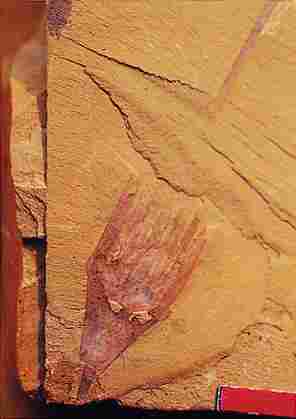 旧金山大学的海洋生物学家钱锟教授是位在美任教多年的华裔科学家,一派谦和的长者风度,非常易于接近。没过多久我就可以像老熟人一样感觉轻松地同他讨论问题了。他认为,寒武纪大爆发的惊人之处就在于Disparity,意思是“不一样”,或者是“相异的和有差距的”。各种各样、毫不相关的动物门类在寒武纪地层里几乎都有,种与种之间在外型上有巨大的差别;而且,不同门类的动物在其后的漫长地质年代里,演化的水平也是极为不同。他找到了一块页岩,递给我:“你看上面这个带柄的红红的小点,叫做海豆芽,我们现在海洋里见到的海豆芽还是这个样,从古到今一点没变。它靠过滤海里的微小生物生存。它不吃人家,人家也不吃它,好象很清高的。”然而,有一些动物的变化则大得惊人,如脊索动物的始祖——云南虫,它向着不同的方向演化出了鱼类、两栖类、爬行类(包括后来灭绝了的恐龙)、鸟类及哺乳类(包括人)。