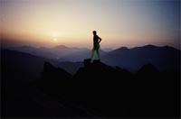 再有一次我到一個城市去佈道的時候,就經過一座橋,那個橋就從這 邊到那邊,用繩子織成的橋,只有一個小板在上面,下面幾十公尺深 ,很可怕的,而那個繩子一年到頭給太陽曬,差不多都要斷掉了!我 說「主啊,我要過去嗎?」心裡的感動說「過去」。但我又不要過又 要過,我在那裡等的時候,那個宣教士就先過去了,而且她比我胖兩 倍,我心裡想「她過去平安,我一定平安的」,但是兩個在一起平安 不平安我就不知道了。所以他先走,「來!來!」她叫我來,我就跟 他去了,「主啊,我憑信心仰望你」,我就跟他走了。走到一半搖的 不得了,用繩子做的相當長的,木頭就這樣窄的,就一面抓一面走。 走到一半的時候, 我注意, 這個宣教士,已經六十多歲的一個婦女 Mrs Beltcher,她的腳大的不得了,很難看。我很少看人家的腳,那 一天一定要看,因為腳步在前面,看她的腳很難看,在前頭,我就跟 他走。